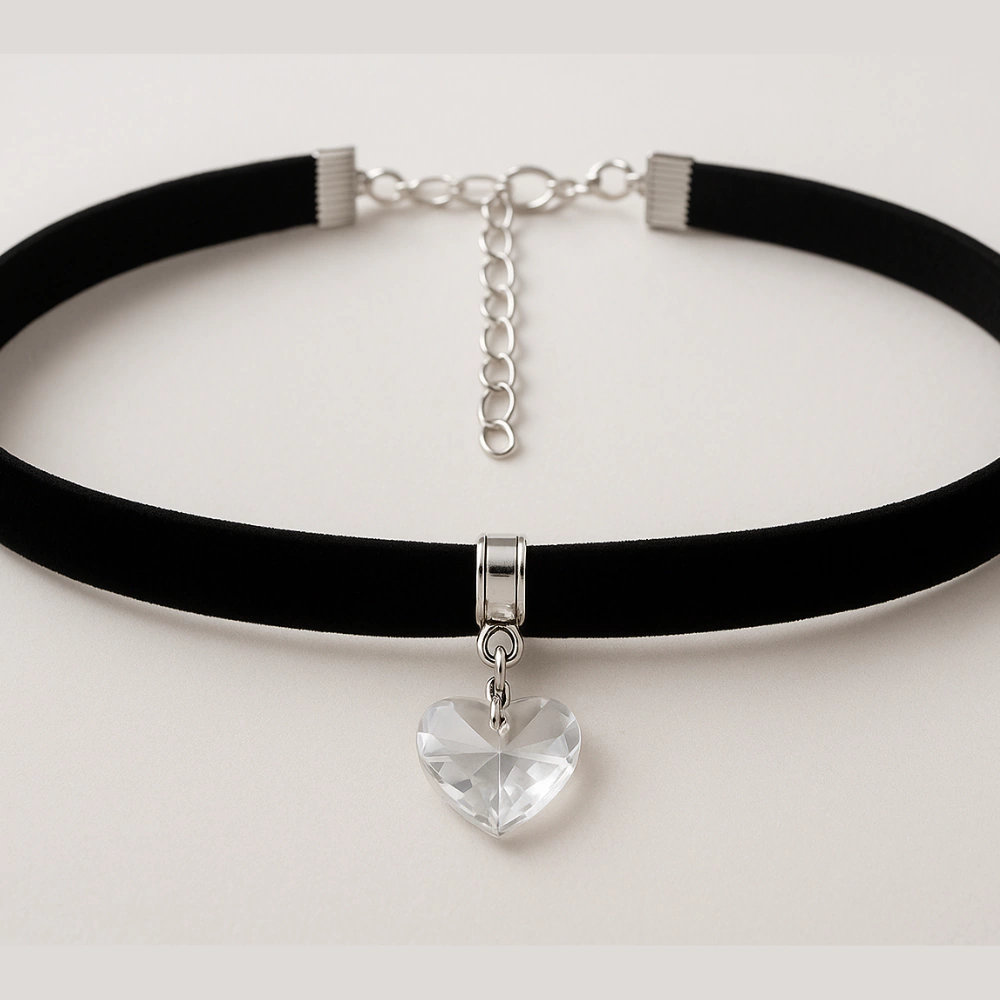 Sabe aquele acessório que dá o toque final no look? Esse choker é assim! A fita preta combina com tudo, e o coração Cristal pedra artificial (aprox. 1,5cm) deixa o visual com aquele ar sexy, gótico e elegante.