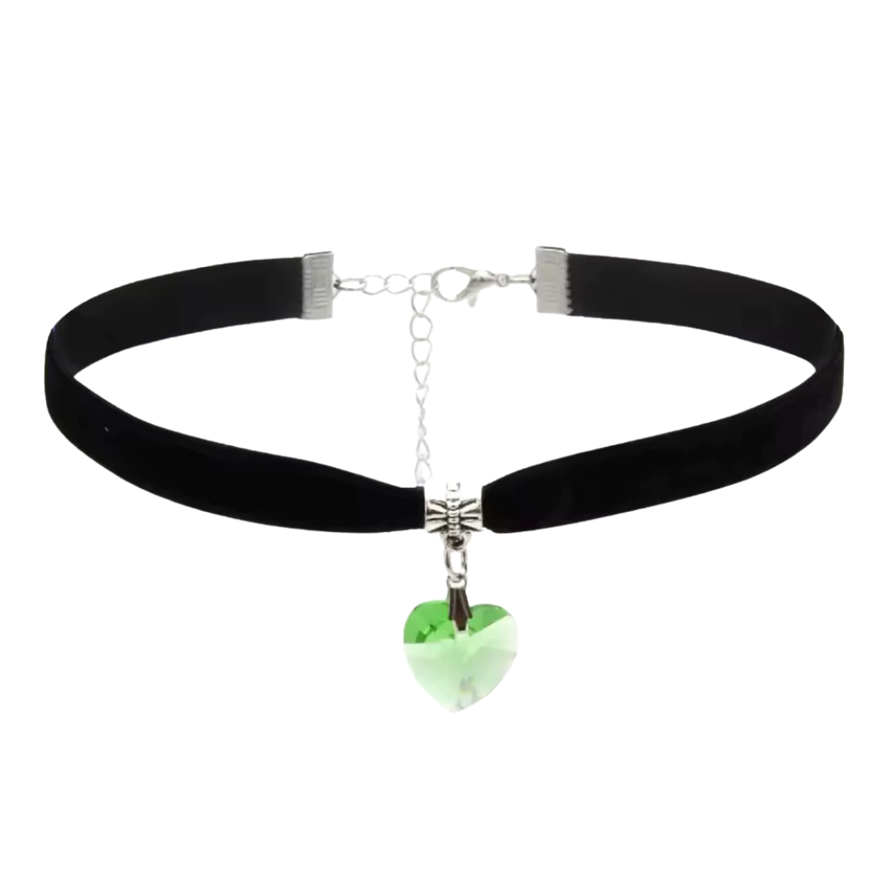 Sabe aquele acessório que dá o toque final no look? Esse choker é assim! A fita preta combina com tudo, e o coração Verde pedra artificial (aprox. 1,5cm) deixa o visual com aquele ar sexy, gótico e elegante.