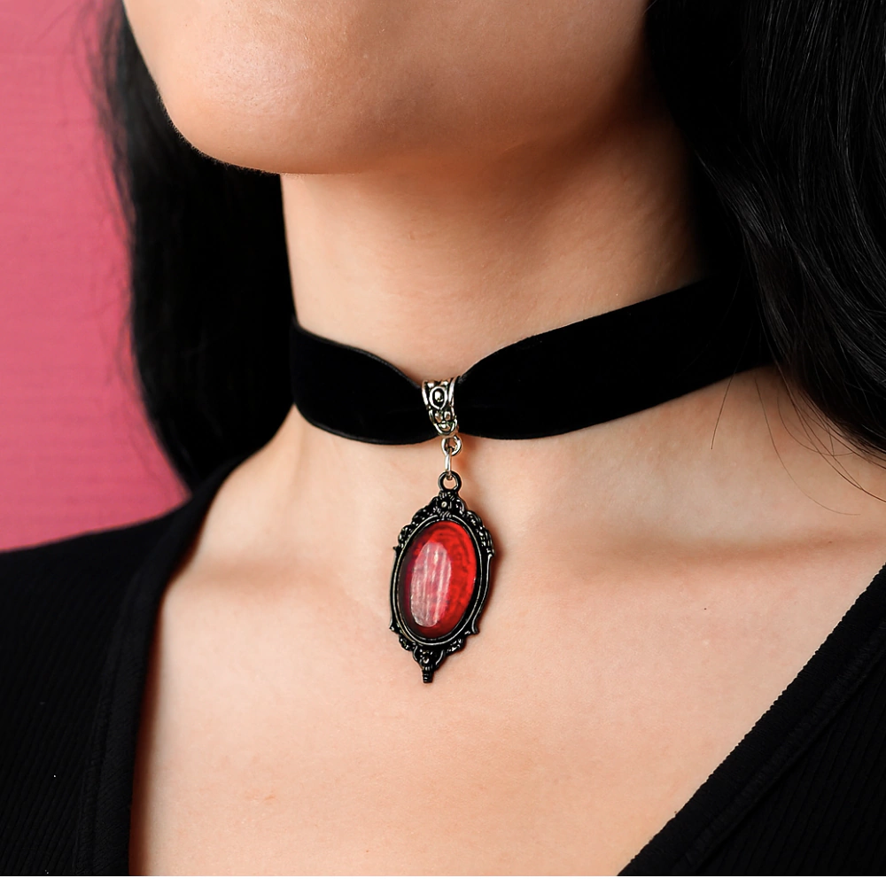Tem dias que tudo que você precisa é de um acessório poderoso! Esse colar com pedra vermelha falsa e vibe punk vai dar aquele toque místico no seu look — seja pra causar no rolê, seduzir no date ou dar de presente pra alguém estiloso.