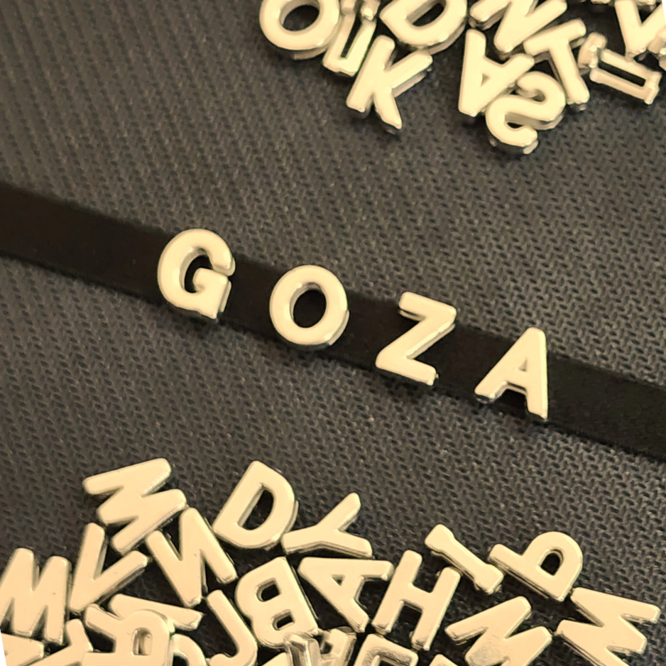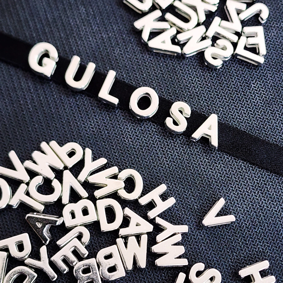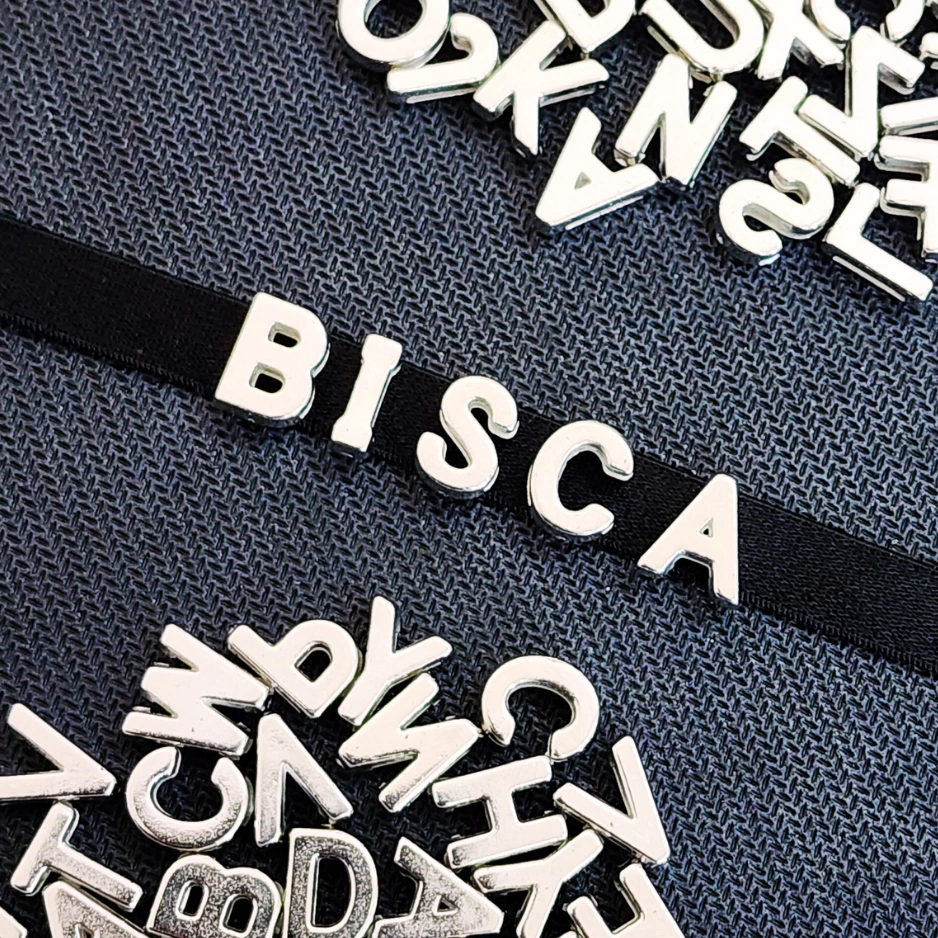Material: elástico + letras metalizadas