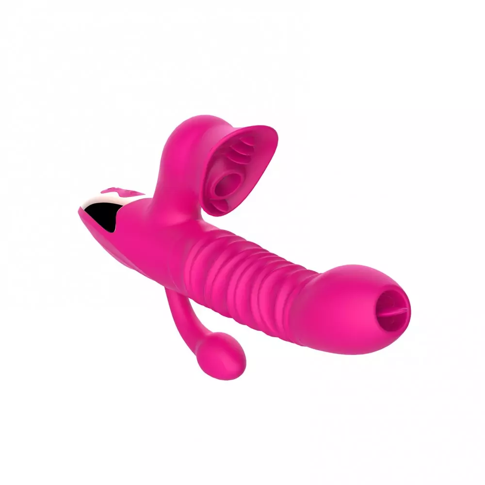 Vibrador com estimulador de Ponto G com movimento de vai e vem, giratório e aquecimento. E para completar esta seleção de prazer e satisfação, ele conta com um motor para estimular o clitóris com cerdas massageadoras que simulam a textura e movimento da língua, isso tudo com controles independentes. Possui um estimulador lateral que irá fazer estimulação do clitóris por meio de ondas de pressão.