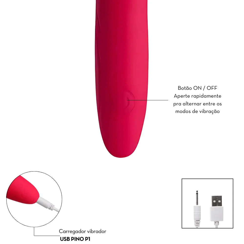 São 10 modos de vibração pra testar, explorar e se divertir! Ele é revestido com silicone de toque macio, discreto pra usar onde quiser e fácil de recarregar com o cabo USB P1 que já vem junto. E ah, segura esse detalhe: a luz acende durante o uso! É fofo e funcional!